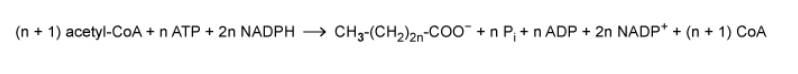 Fatty acid synthesis proceeds according to the following reaction: