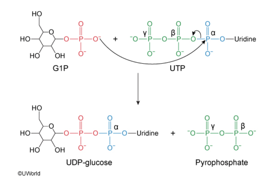 When the cell is in need of glucose, glycogenolysis is upregulated, beginning with the activation of glycogen phosphorylase. Glycogen phosphorylase catalyzes the production of which of the following molecules?