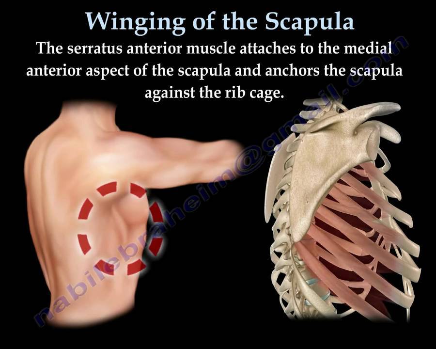 -Defect in SERRATUS ANTERIOR (abducts arm above horizontal plane)