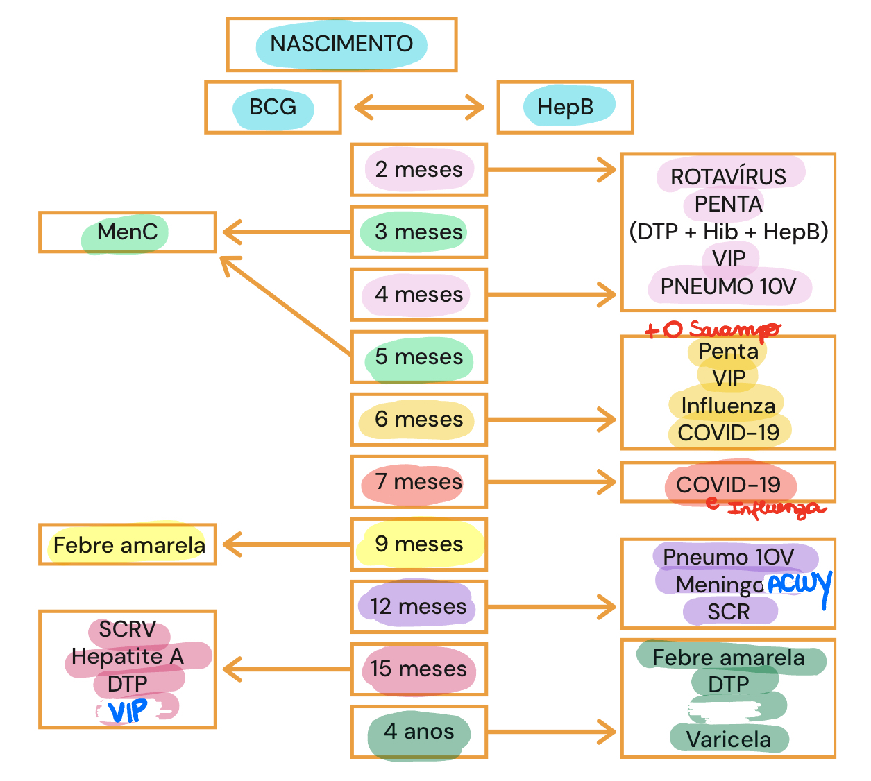 Influenza todo ano dos 6 meses aos 5 anos. A primeira tem reforço 30 dias depois