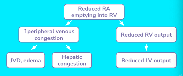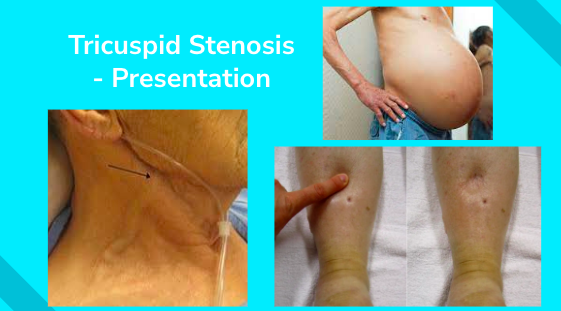 What can we expect to happen physiologically and clinically when we see a patient with tricuspid stenosis?