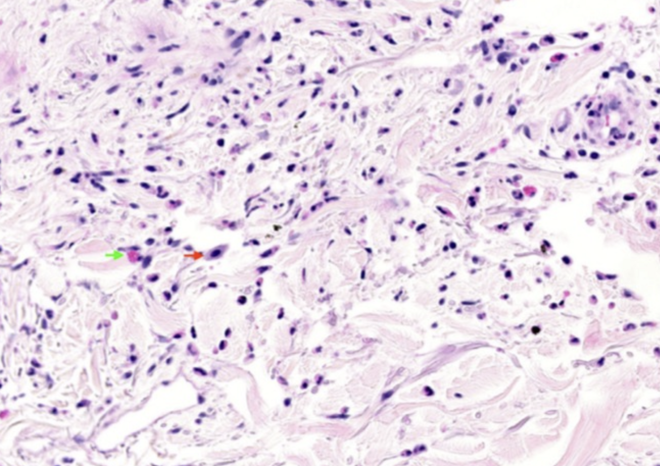 Infiltrat périvasculaire léger, parfois interstitiel