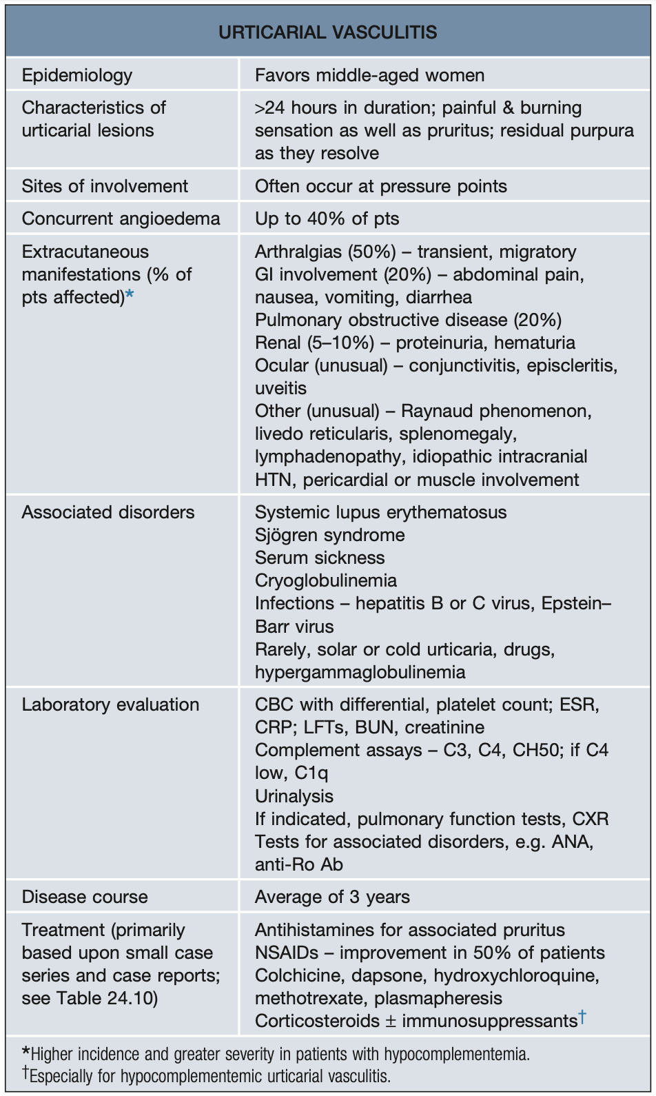 Manifestations extra-cutanées vasculite urticarienne