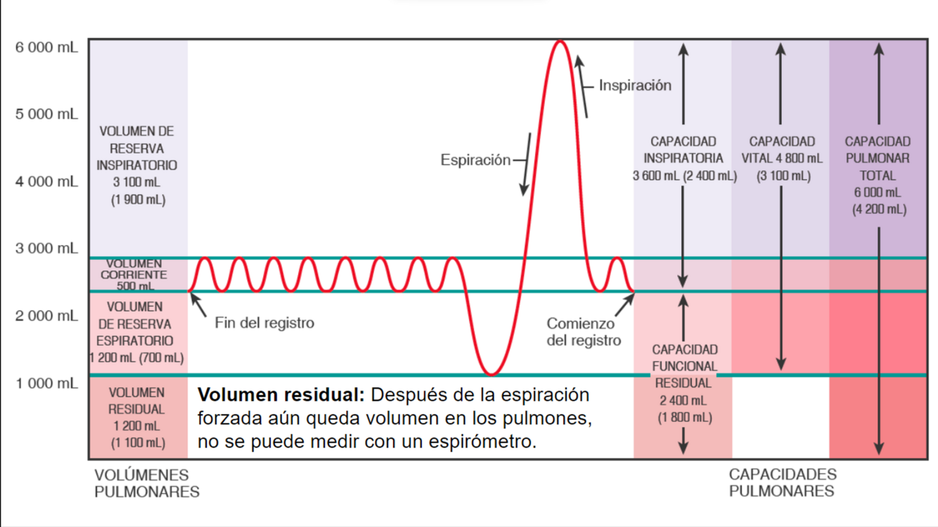 El aire inspirado con un esfuerzo inspiratorio máximo por encima del TV.
