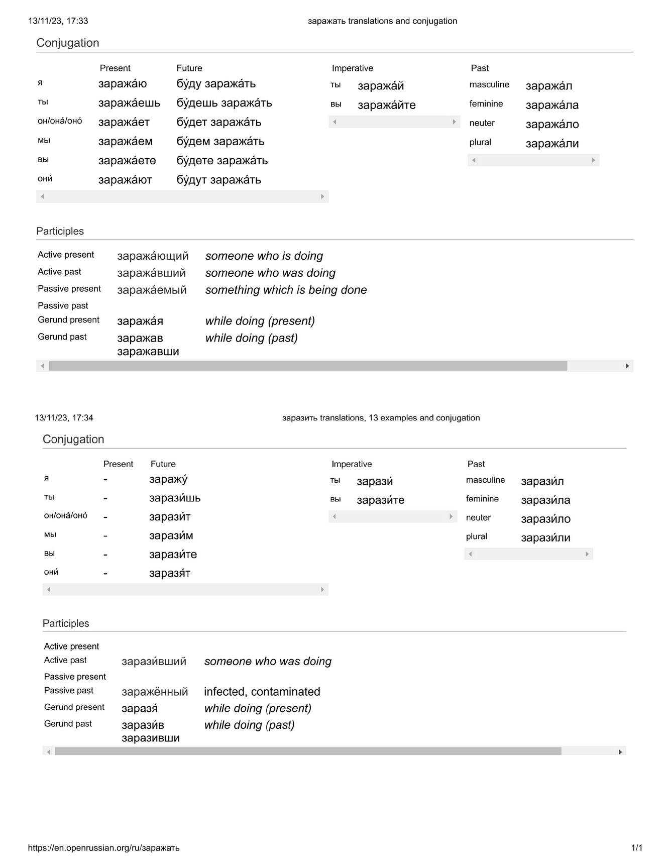 заража́ть / зарази́ть
