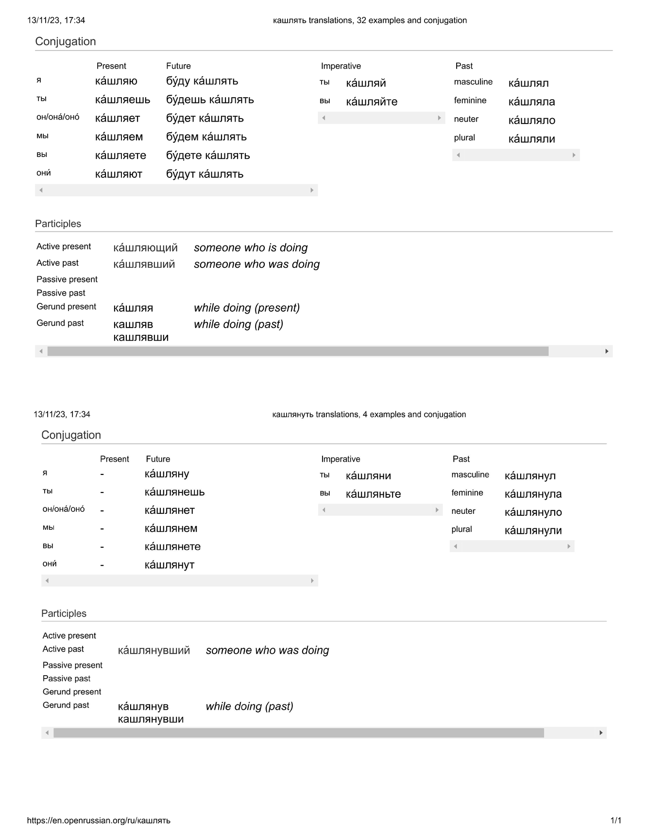 ка́шлять / ка́шлянуть