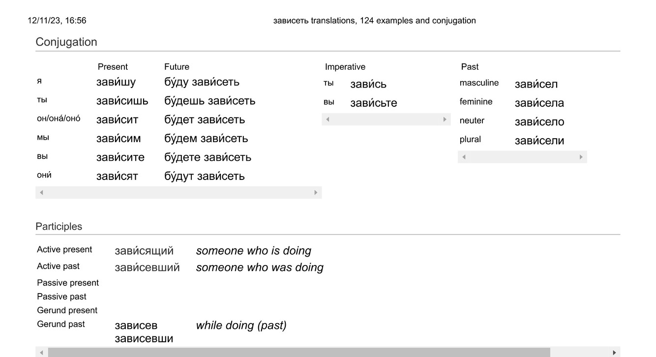 зави́сеть (от + gen.) (imp; no aspect partner)