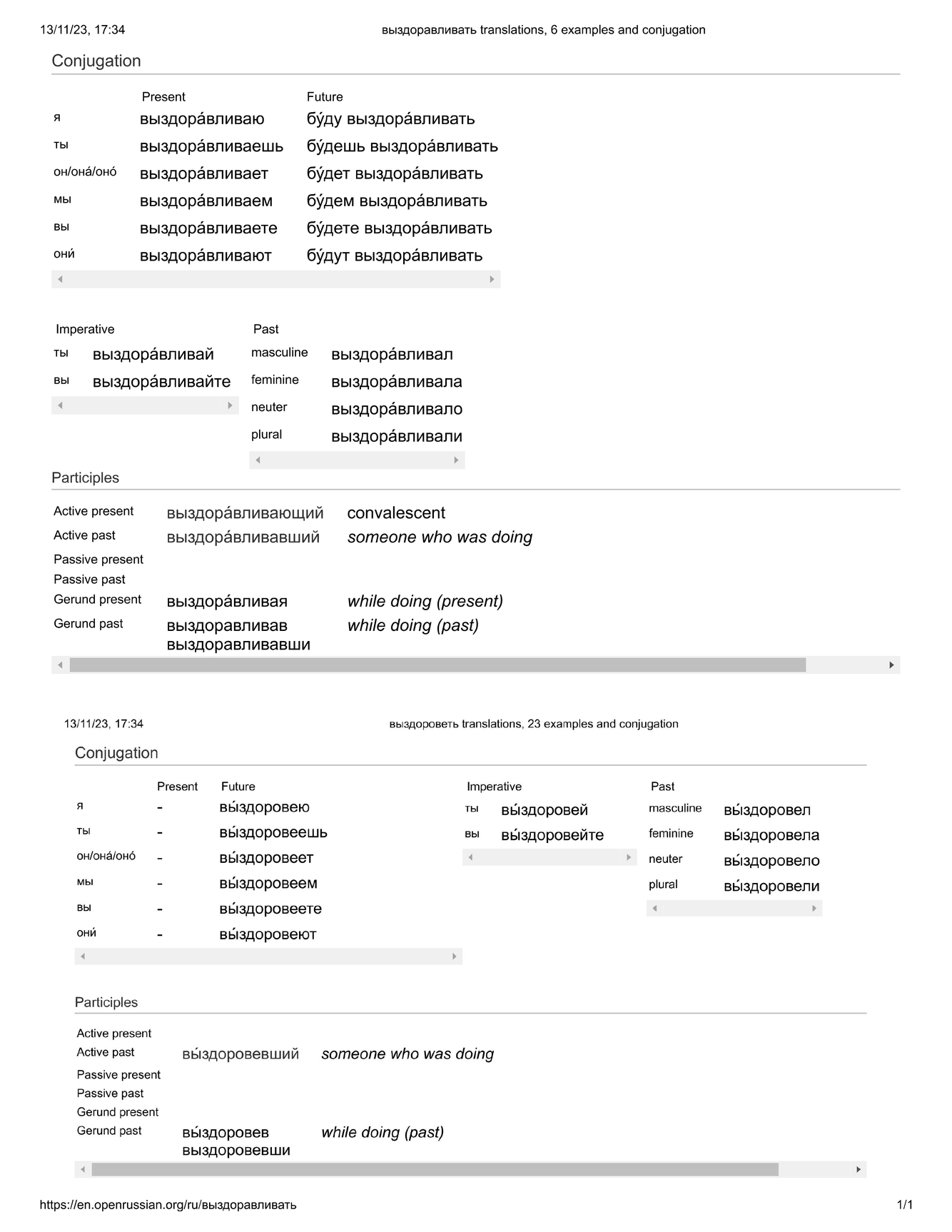 выздора́вливать / вы́здороветь (от + gen.)