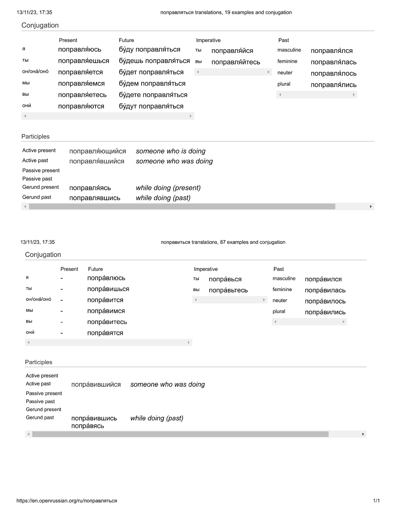 поправля́ться / попра́виться