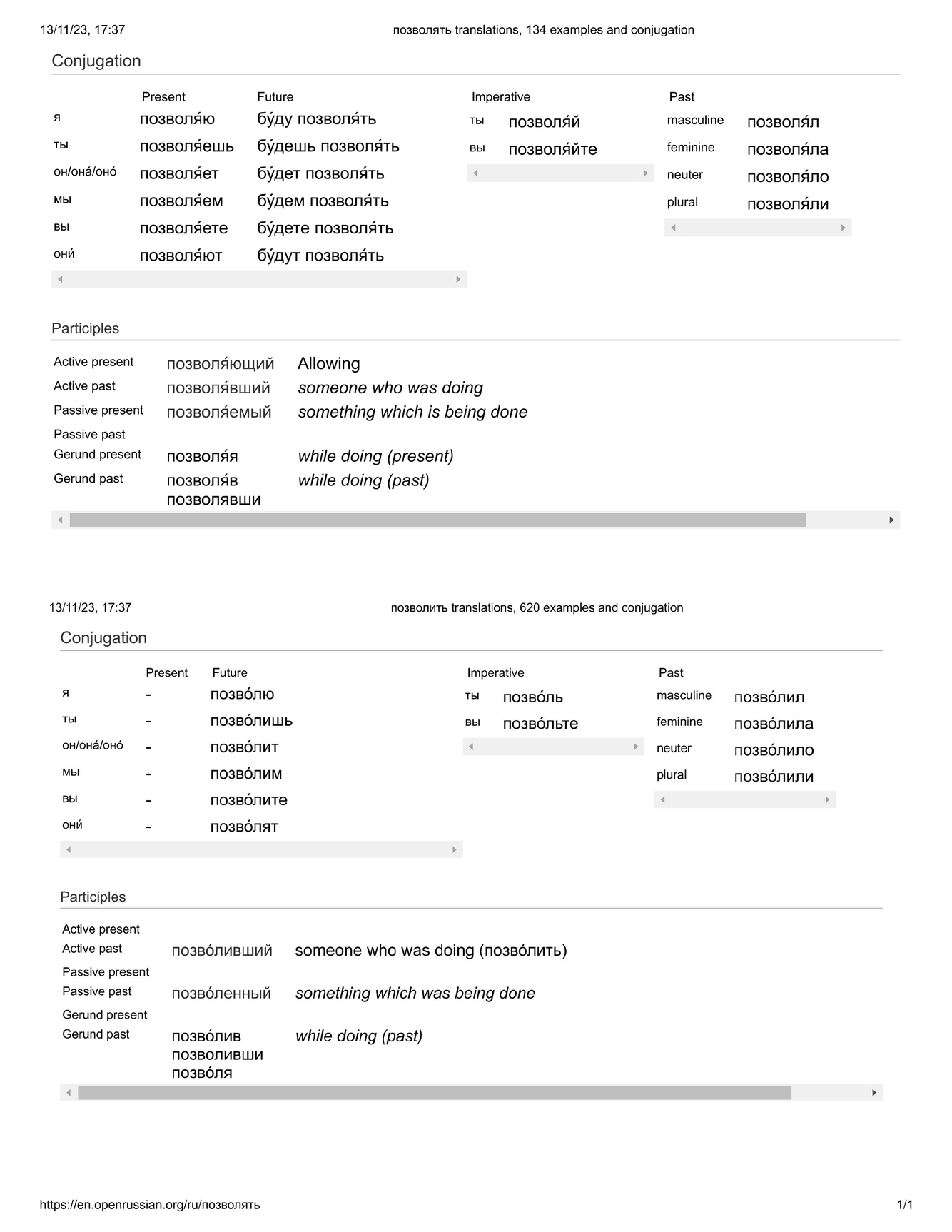 позволя́ть / позво́лить + dat.