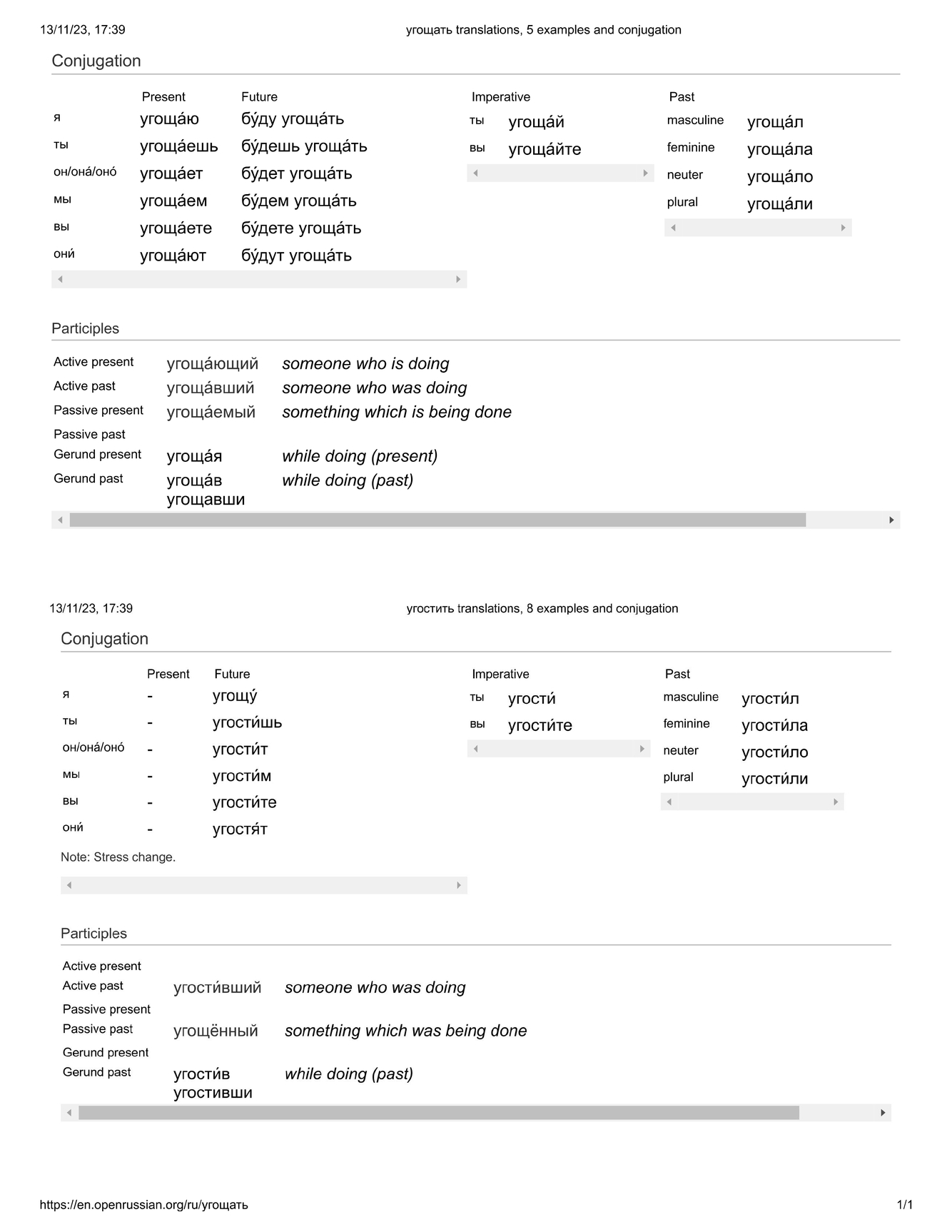 угоща́ть / угости́ть