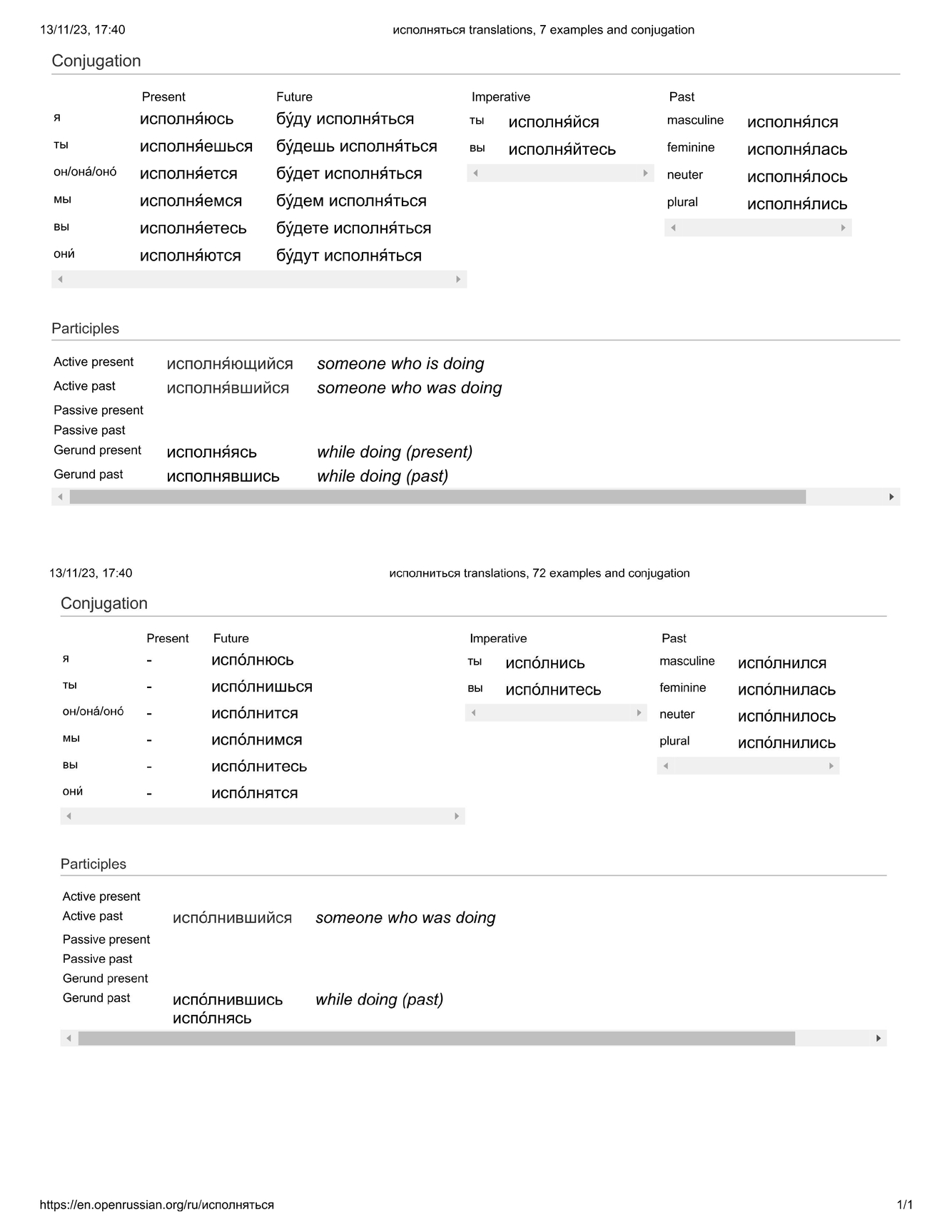 исполня́ться / испо́лниться