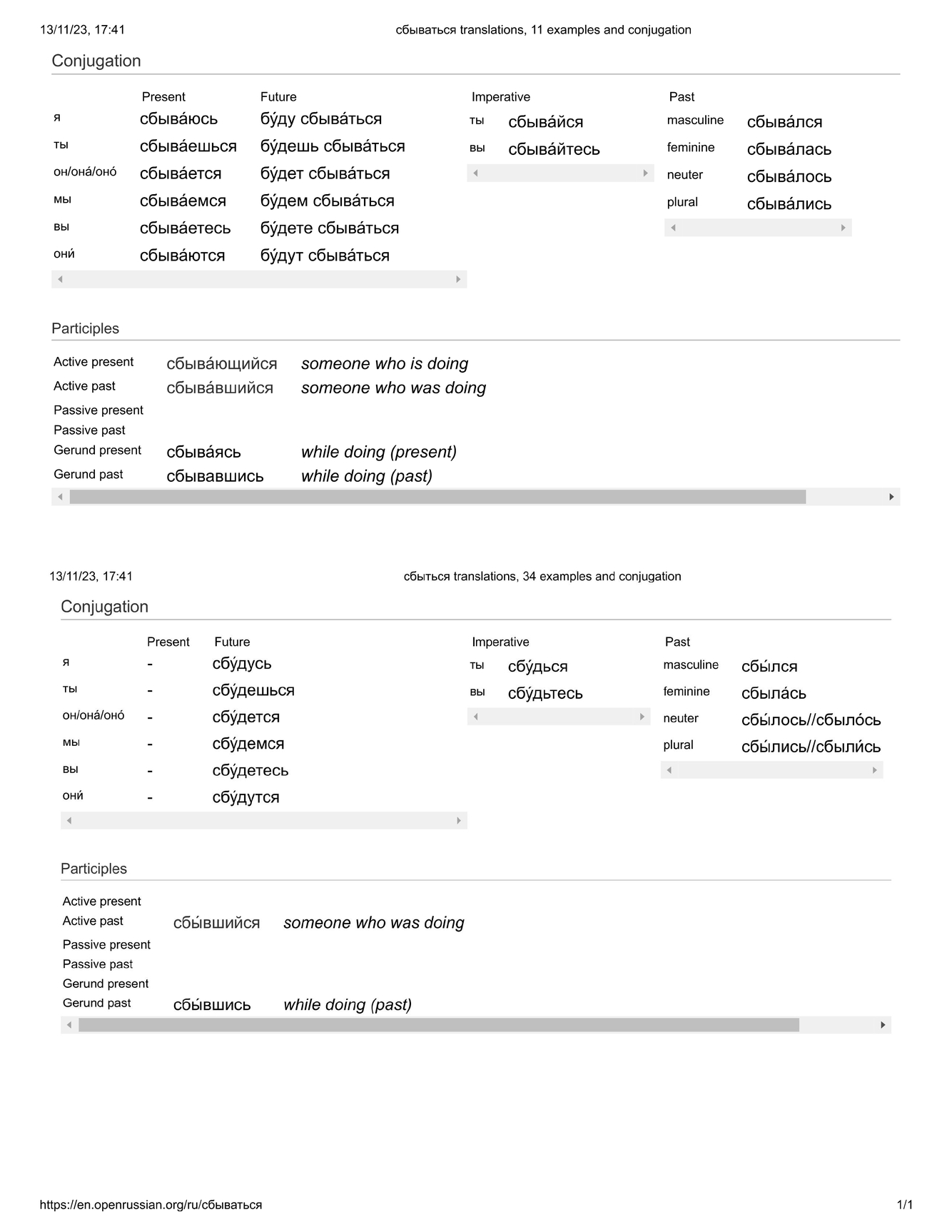 ex) My dream came true = Моя́ мечта́ сбыла́сь.
