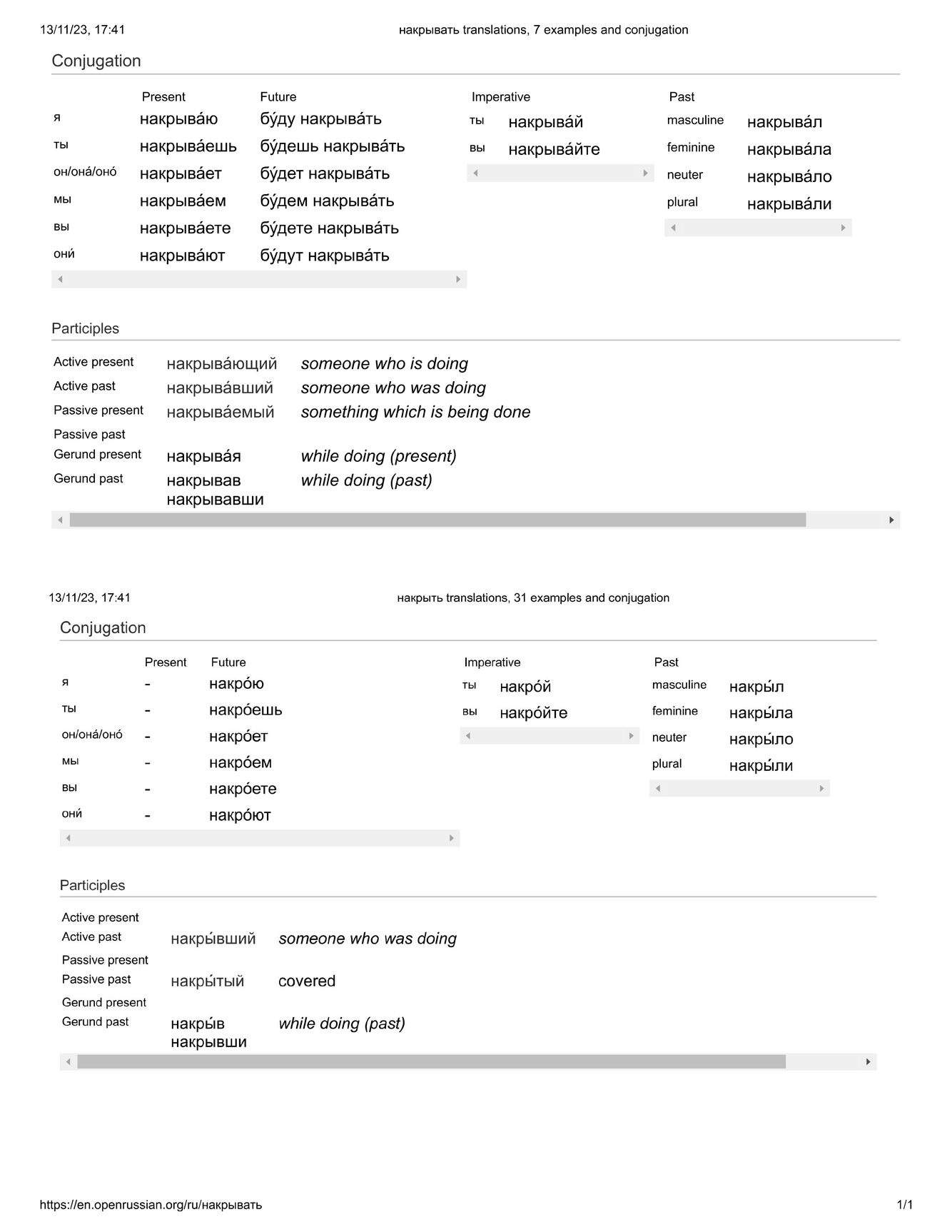 riflx. = накрыва́ться / накры́ться