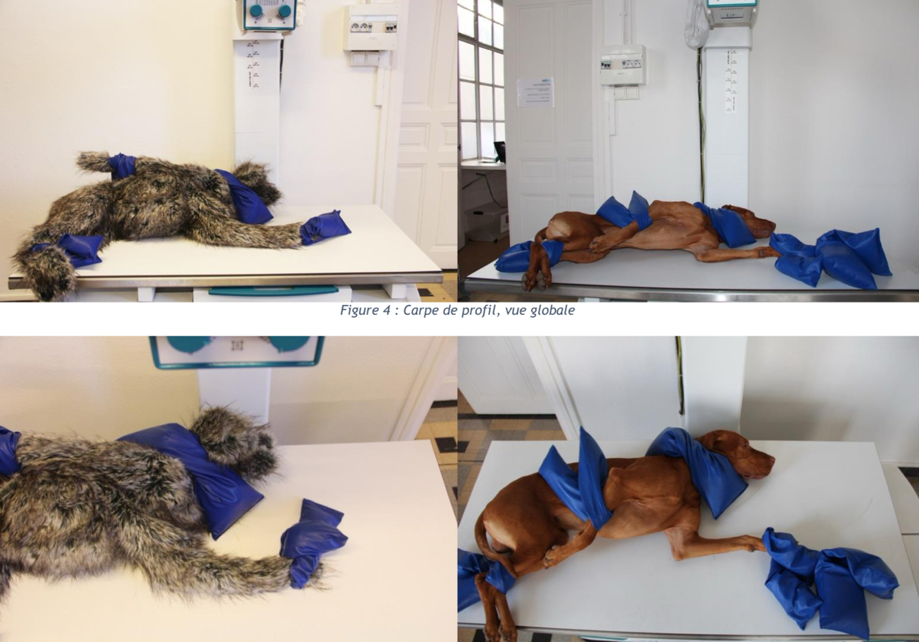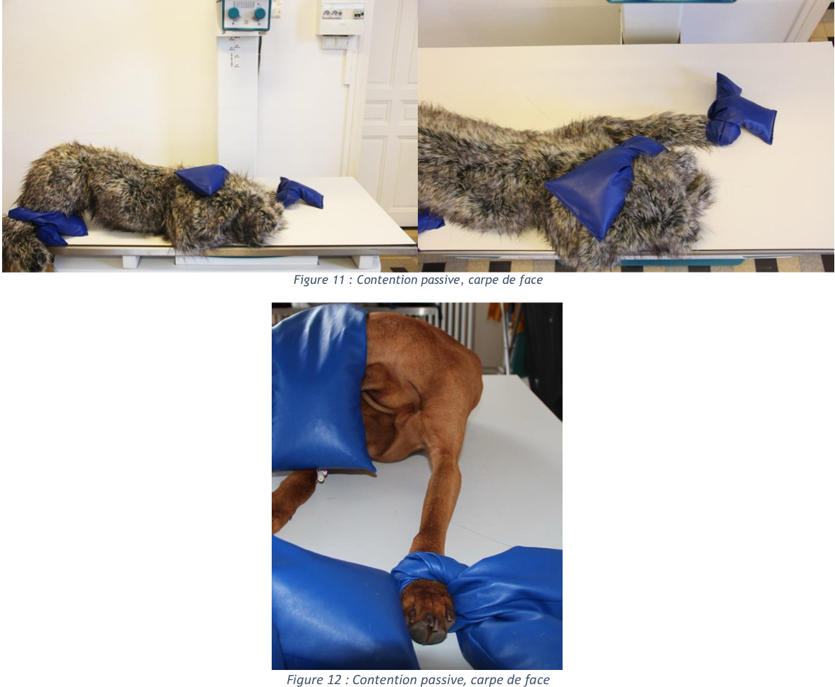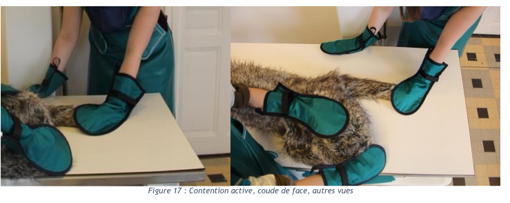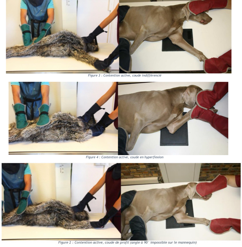 - personne A: tient tête de l’animal contre la table et l’antérieur à radiographier au bout des doigts
