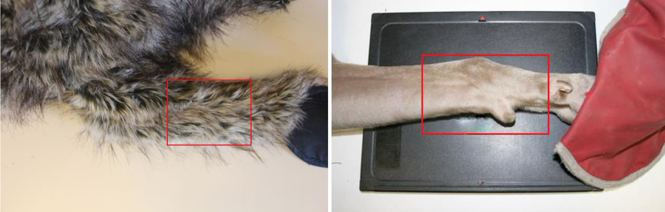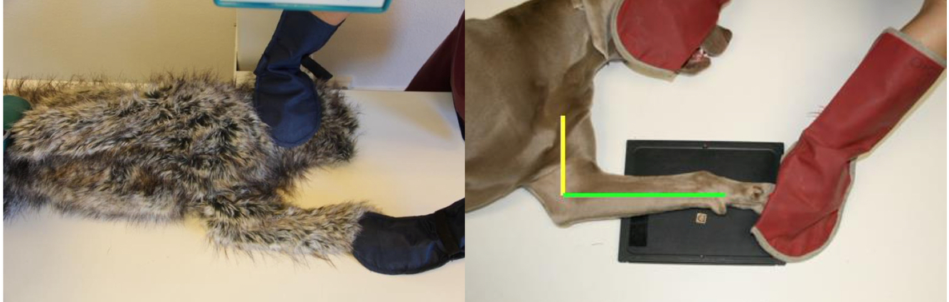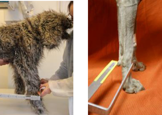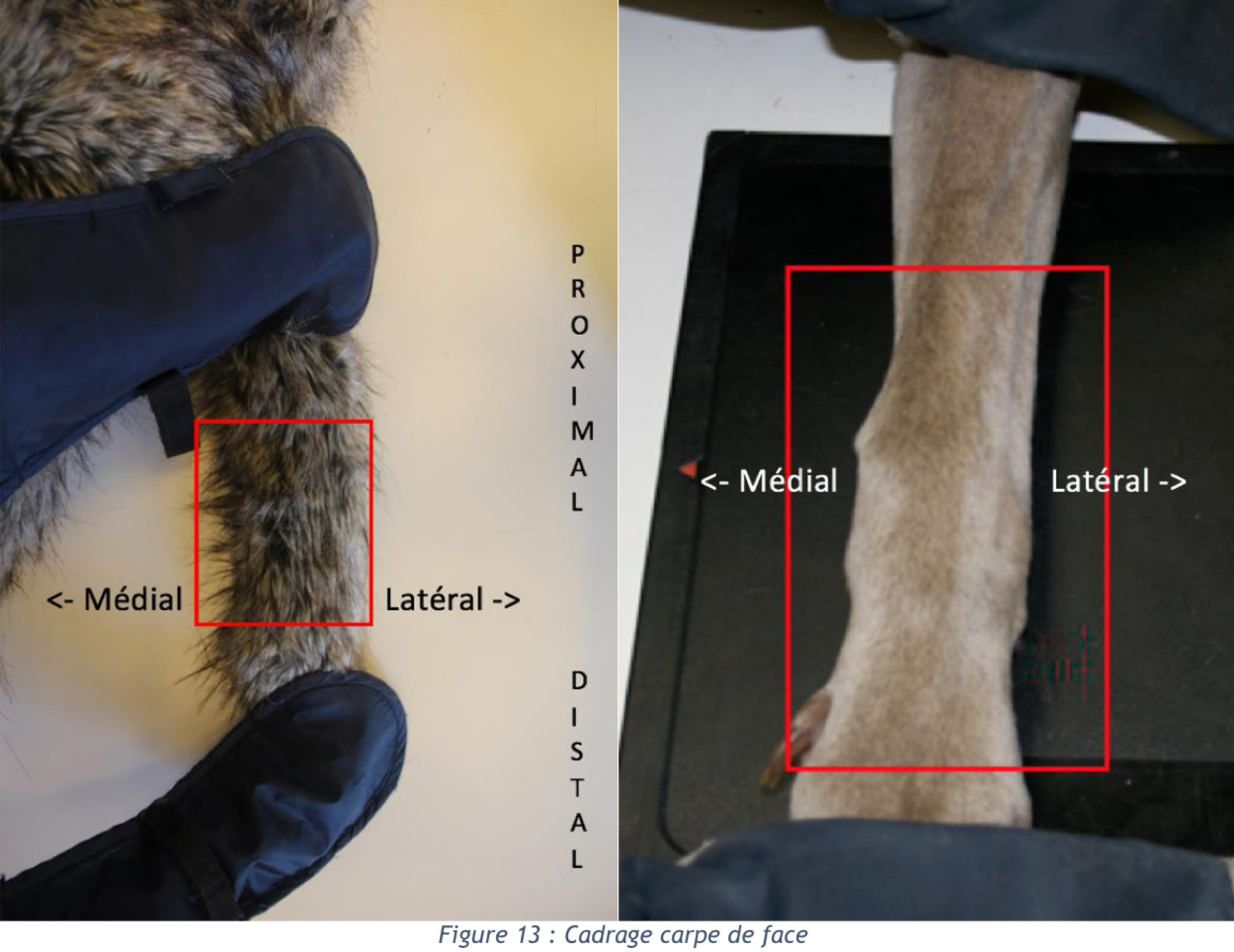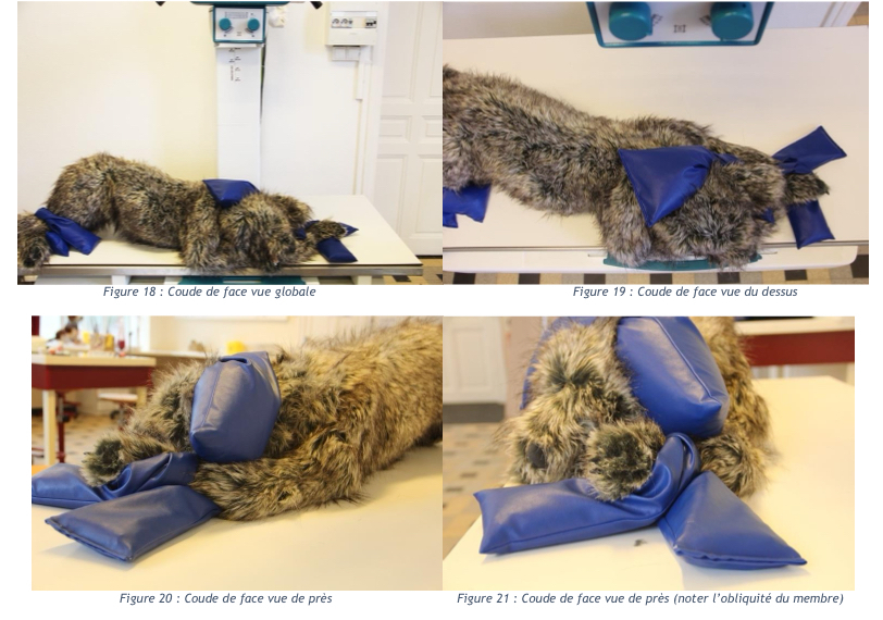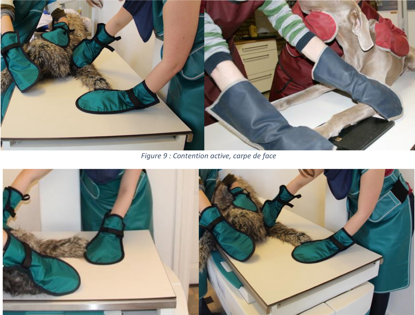 - personne A: tient tête de l’animal contre la table et l’antérieur à radiographier au bout des doigts