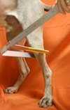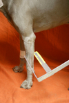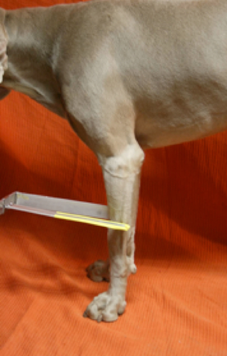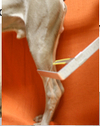 - animal en décubitus ventral, au plus près du bord de la table pour avoir membre sous le tube