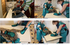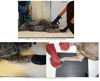 - mains biens couverts par gants, gant ne recouvre pas carpe