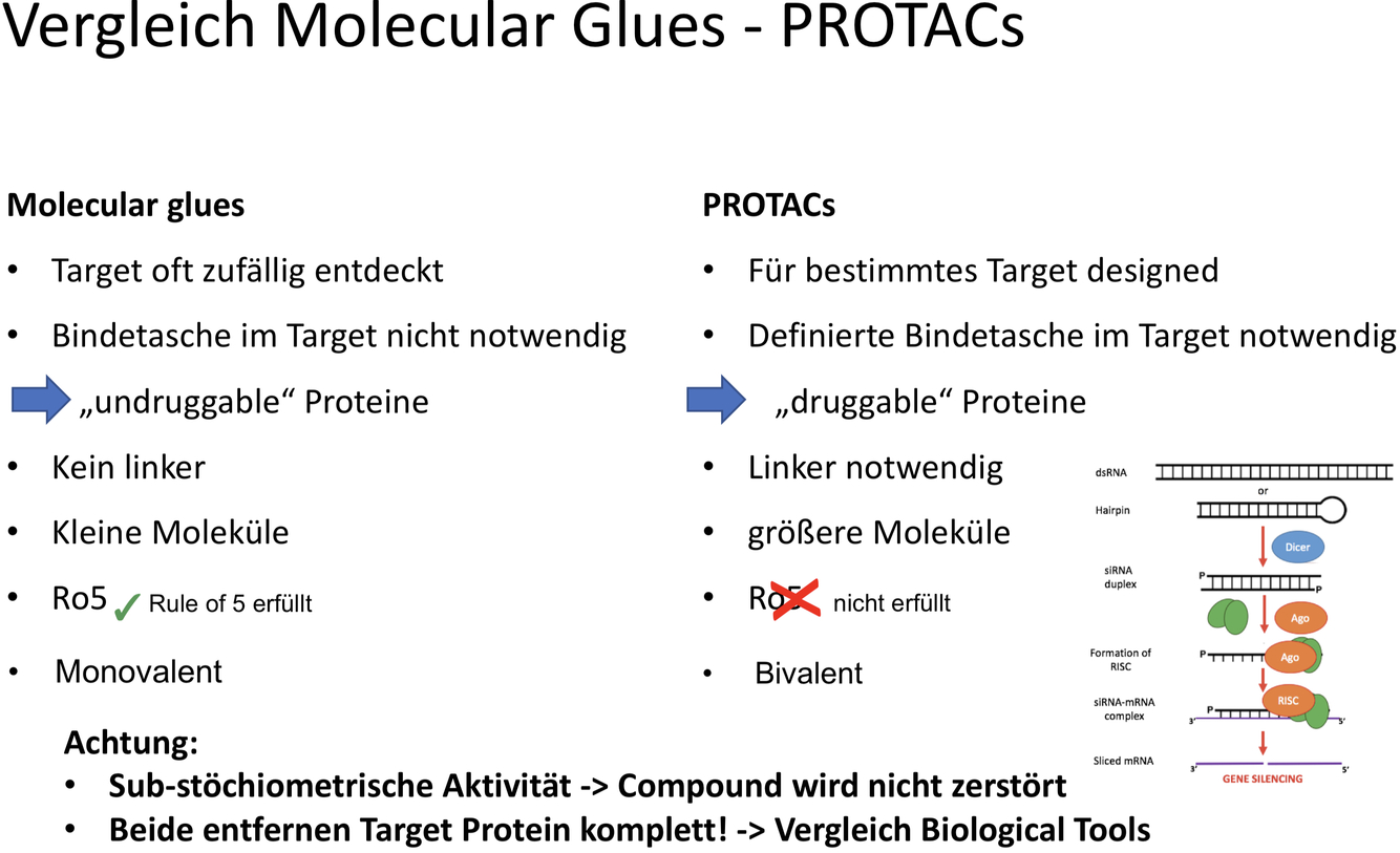 Welche Untetschiede zwischen Molecular Glues und PROTACS kennen Sie
