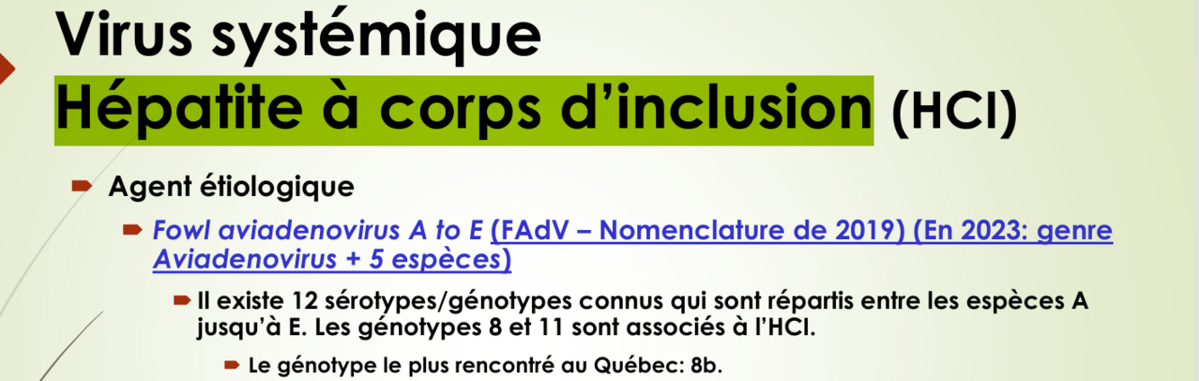 Il est très important de choisir les bonnes souches vaccinales pour protéger les oiseaux contre l’hépatite à corps d’inclusion. Quel génotype d’adénovirus aviaire est principalement rencontré au Qc comme étant responsable de l’hépatite à corps d’inclusion?