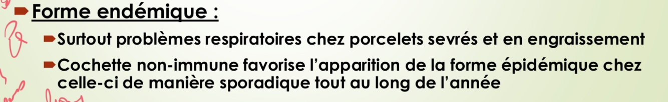 c) La forme endémique de la maladie du syndrome reproducteur et respiratoire porcin (SRRP) est surtout caractérisée par des problèmes reproducteurs chez les cochettes non-immunes