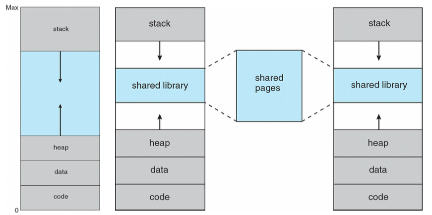 System libraries and shared memory can be accessed by mapping them into virtual address space.