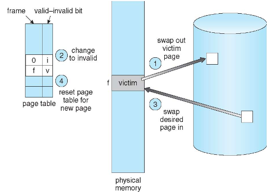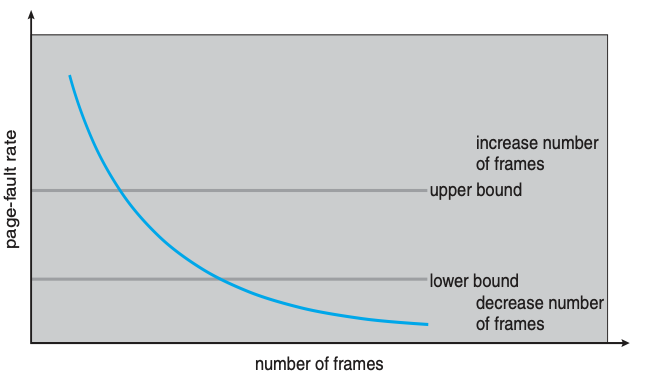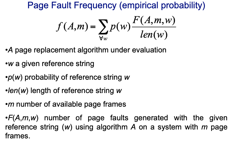 Effective access time = (1-p) * memory access + p ( page_fault_overhead + swap_out_time + swap_in_time)