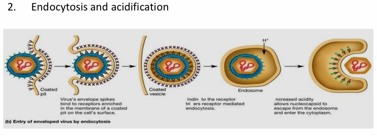 describe endocytosis and acidification (penetration and uncoating phase) for enveloped viruses
