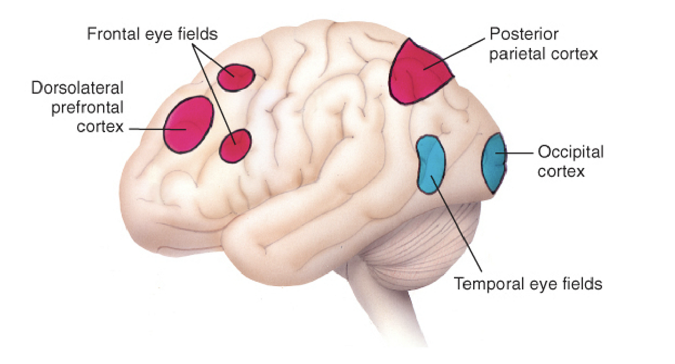 Dorsolateral Prefrontal Cortex: Important for saccades.