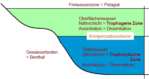 Unterscheiden Sie die Trophogene von der Kompensaionsebene und Tropholytischen Zone.
