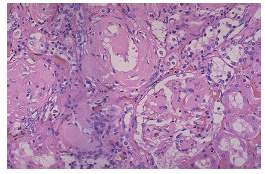 H&E slide of kidney - what does it show? What staining would you do next?