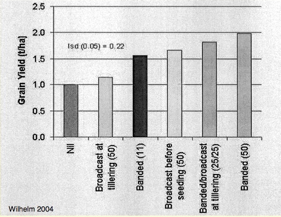 Banding (5 cm distance horizontally and vertically from seed) before/at seeding is best.