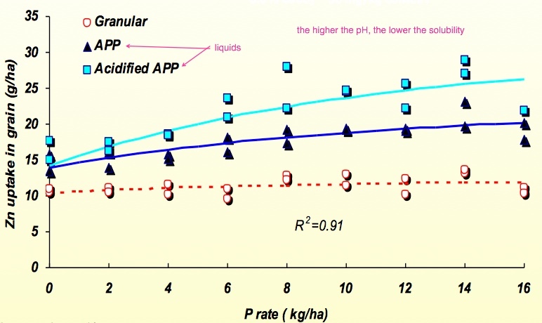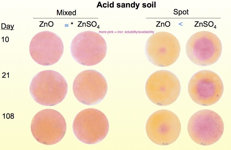 Low solubility fertiliser sources (e.g. ZnO (zinc oxide)) are better off being incorporated with the soil.