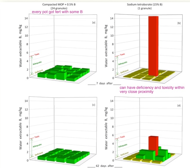 Soluble (i.e. liquid) boron (B) is better than granular B.