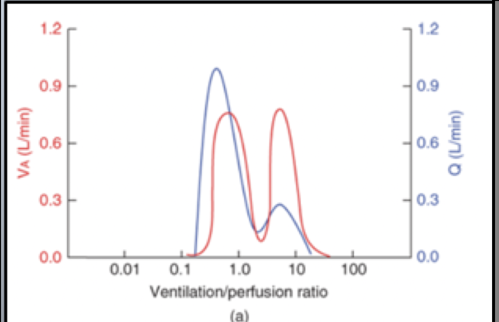 •Alveolar wall damage leads to wasted ventilation, leads to decreased VA/ Q in some parts