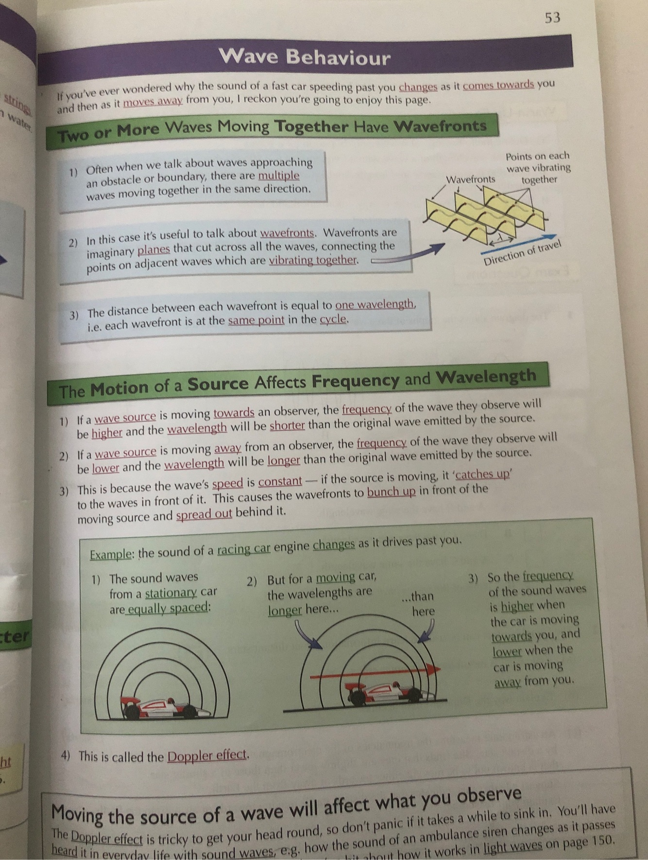 If a wave source is moving towards an observe the frequency of the wave they observe will be higher and the wavelength will be shorter than the original wave emitted by source
