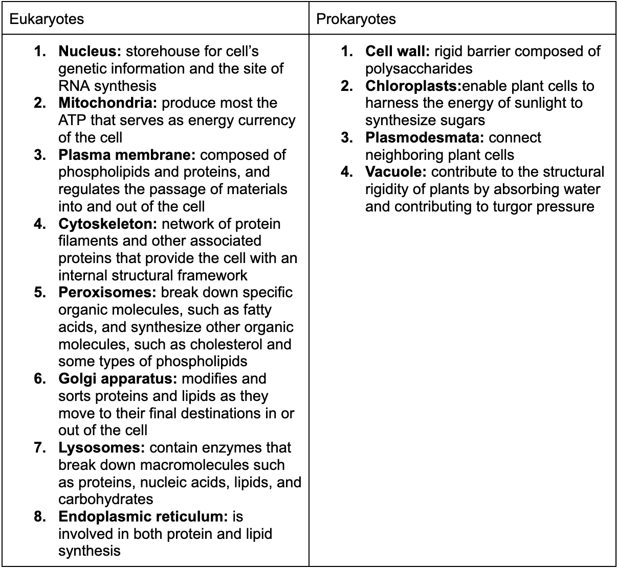 What are the structural properties of prokaryotes and eukaryotes?