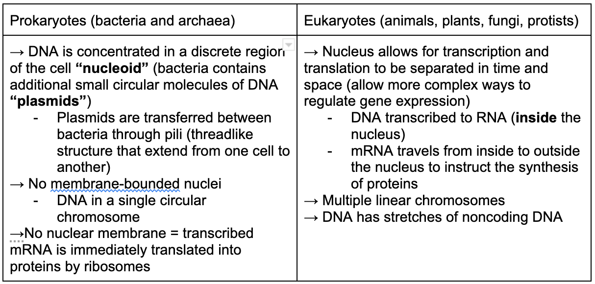 Info encoded in DNA –directs→ form proteins*