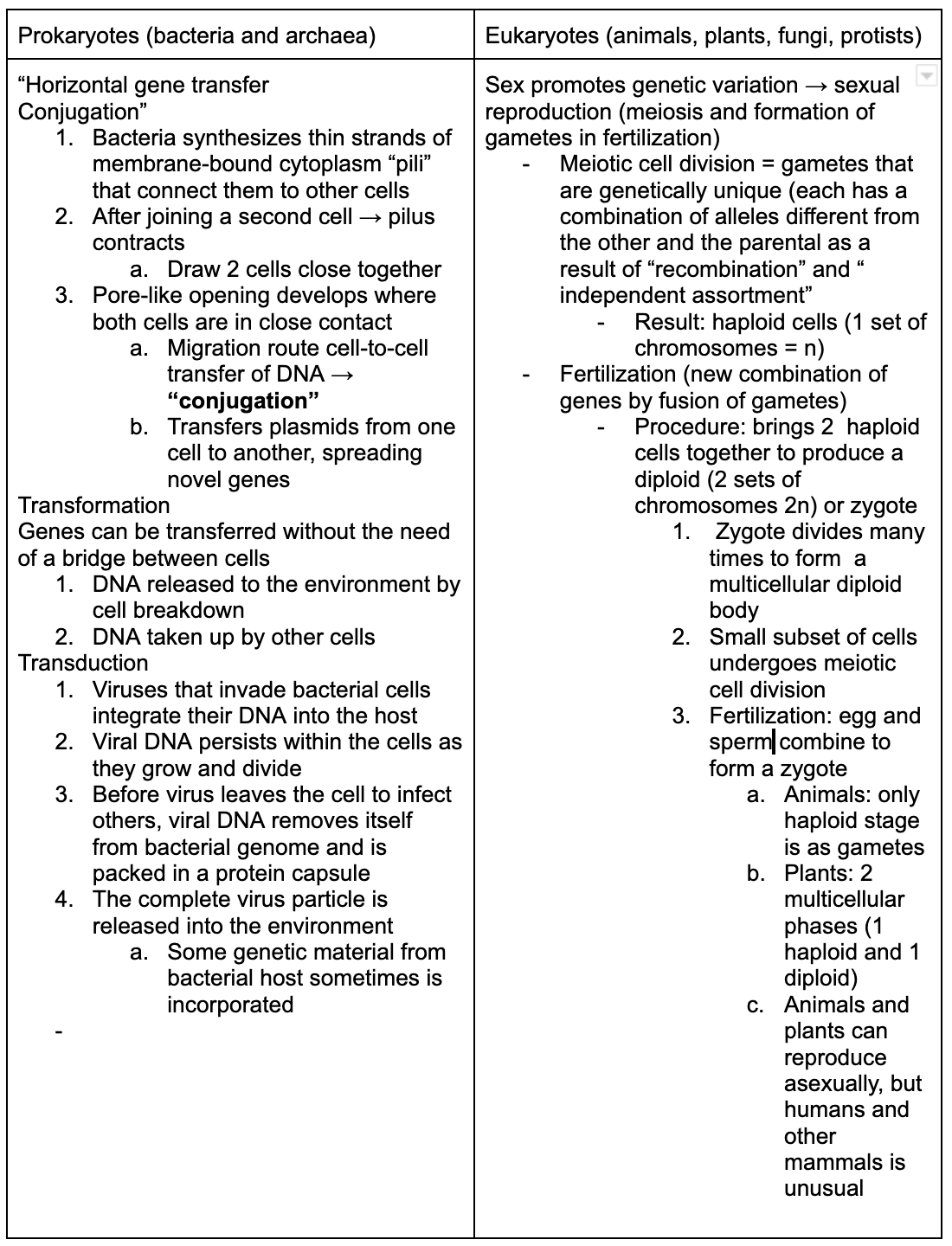 - Right conditions, 2 cells may fuse and form a diploid (zygote → zygote formed by single-celled eukaryotes functions as a resting cell)