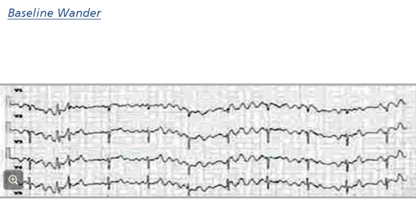 A wandering baseline is where the ECG waveform baseline is not level and instead moves like a wave Can be due to poor electrode attachment