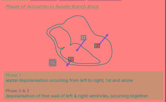 Phase 1 -Septal depolarisation occurs from left to right Phases 2 and 3 Depolarisation of the free wall of the left and right ventricles then occurs together