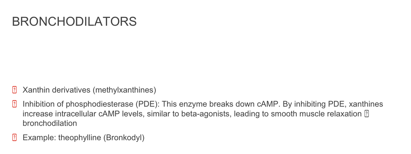 Explain the inhibition of phosphodiesterase (PDE) by bronchodilators