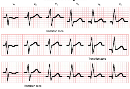 Equal R and S waveform voltages. Usually occurs around V3-V4. Normal variant to have an early V2 or late V5 transition zone