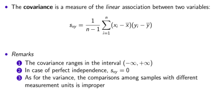 Covariance is a measure of how much two random variables vary together. It’s similar to variance, but where variance tells you how a single variable varies, co variance tells you how two variables vary together.