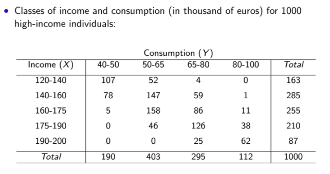 a tabular method for summarizing the distributional characteristics of the data for two variables simultaneously.