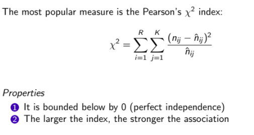 It can be shown (after some algebra) that if X and Y are independent, the ij frequency must be equal to: