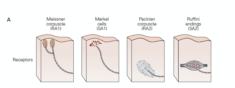 There are four mechanoreceptors in the skin of most mammals: