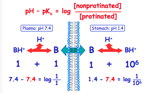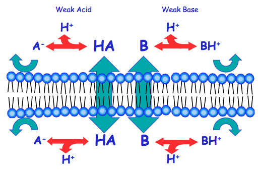 Concentration may differ on either side of membrane.. how does this effect weak acids adn bases..