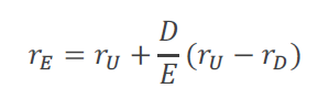 Let 𝐸 = market value of equity, 𝐷 = market value of debt, 𝑈 = market value of unlevered equity, and 𝐴 =market value