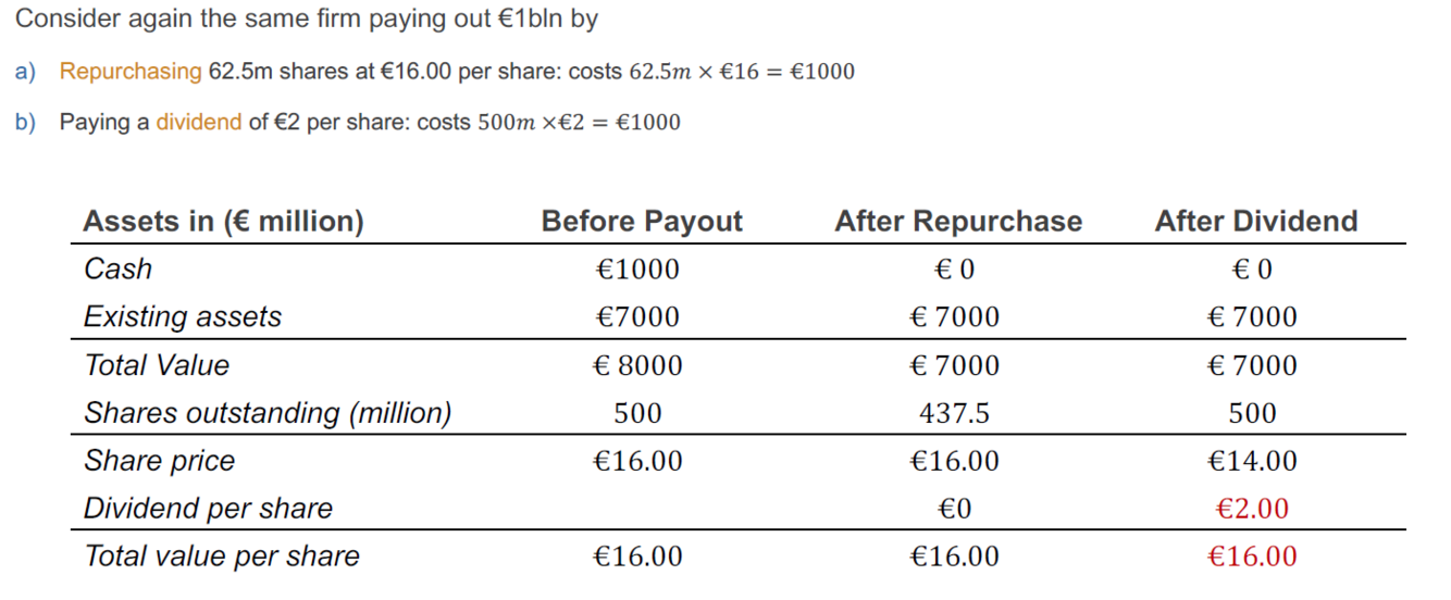 (4) Fallacy: ”Paying out cash through share repurchases is better than dividends because repurchases support the share price.”